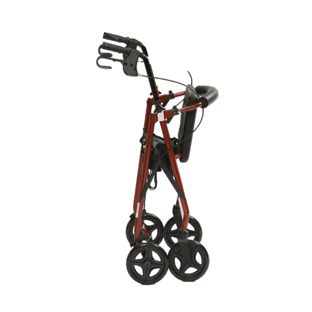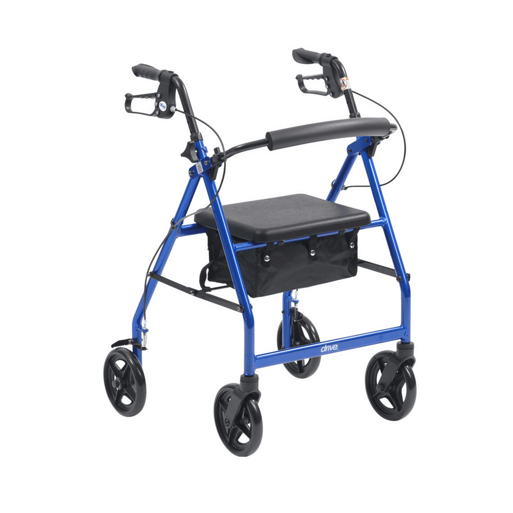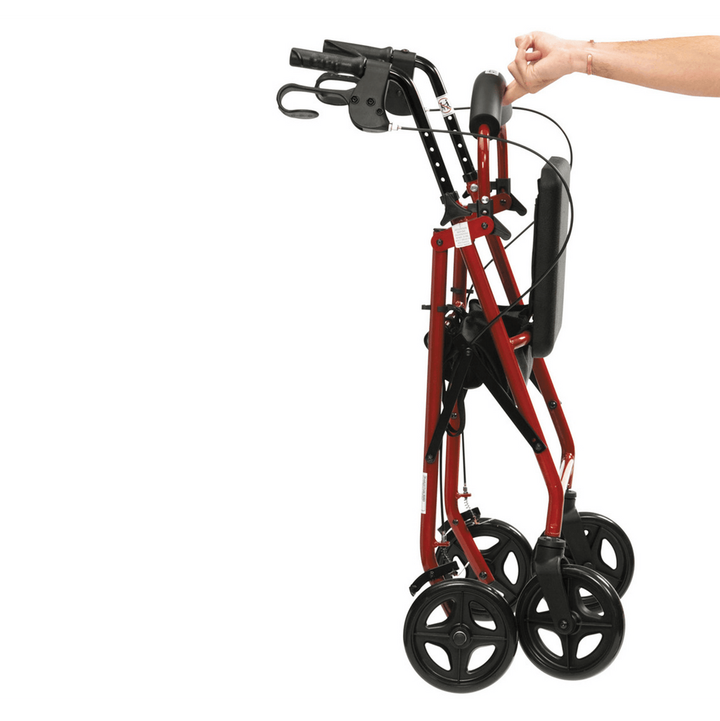 The Drive Lightweight Aluminium Rollator provides maximum comfort with its curved and padded backrest and seat, while the easy folding mechanism and storage compartment make it convenient for travel. Its aluminium frame ensures durability and lightweight portability. Adjust the handle height for optimal comfort and choose from red or blue options.