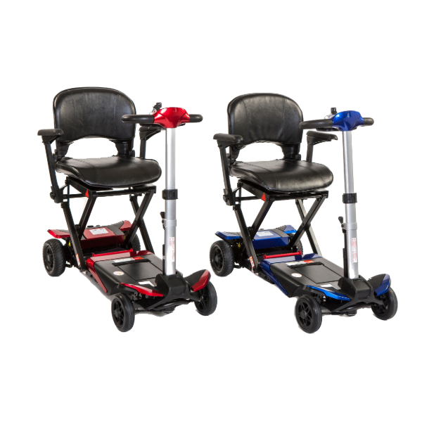 The Monarch Solax Smarti is a convenient and efficient auto-folding scooter, available in red or blue. With a weatherproof chassis and rear suspension, this scooter ensures a comfortable ride in any weather. Use the remote control to fold the scooter at the press of a button for added convenience and ease.