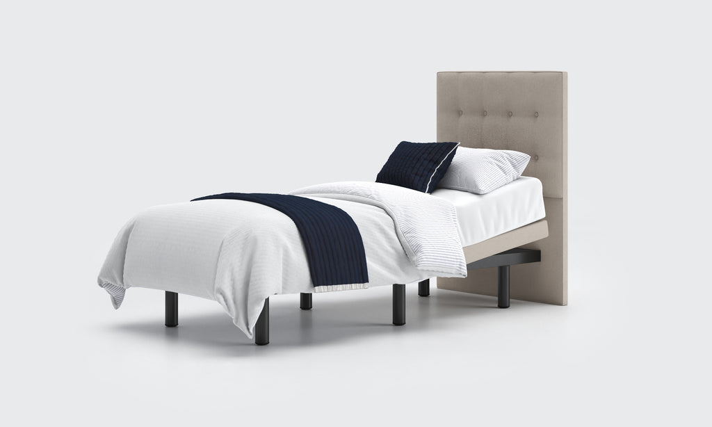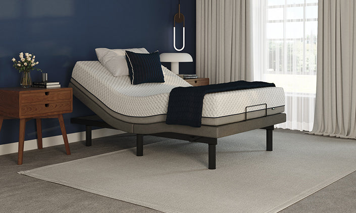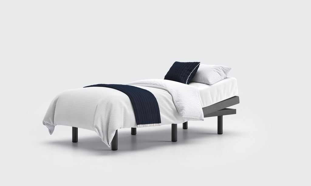 The Opera Motion Adjustable Base is the ideal option for achieving a modern aesthetic in your bedroom. With features such as back and leg rest adjustment, zero-gravity and anti-snore mode, this base offers ultimate comfort and elevated support. It can be used as a standalone bed or integrated into an existing bed frame, with a variety of sizes, feet, headboard, and fabric options available that may affect the pricing.