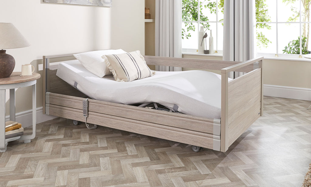 The Opera Signature profiling bed offers discreet and cozy design, while providing waist-high and floor-level adjustments for caregivers and users. Covered by a 3-year warranty, this versatile bed is designed to cater to varying care needs.