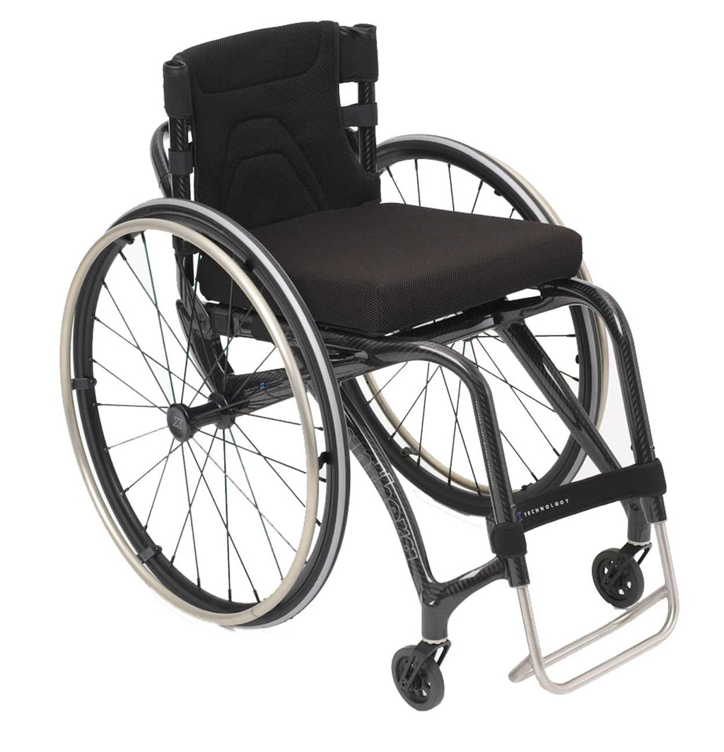 Panthera X is known to be the lightest wheelchair in the market, boasting a mere 2.1 kg transport weight. Crafted from carbon fibre with advanced technology, its strength has been significantly enhanced. The chair features a built-in rear axle and 4 backrest positions, adjustable between 22 and 35cm, for optimal balance. The footrest height is also adjustable for added comfort.