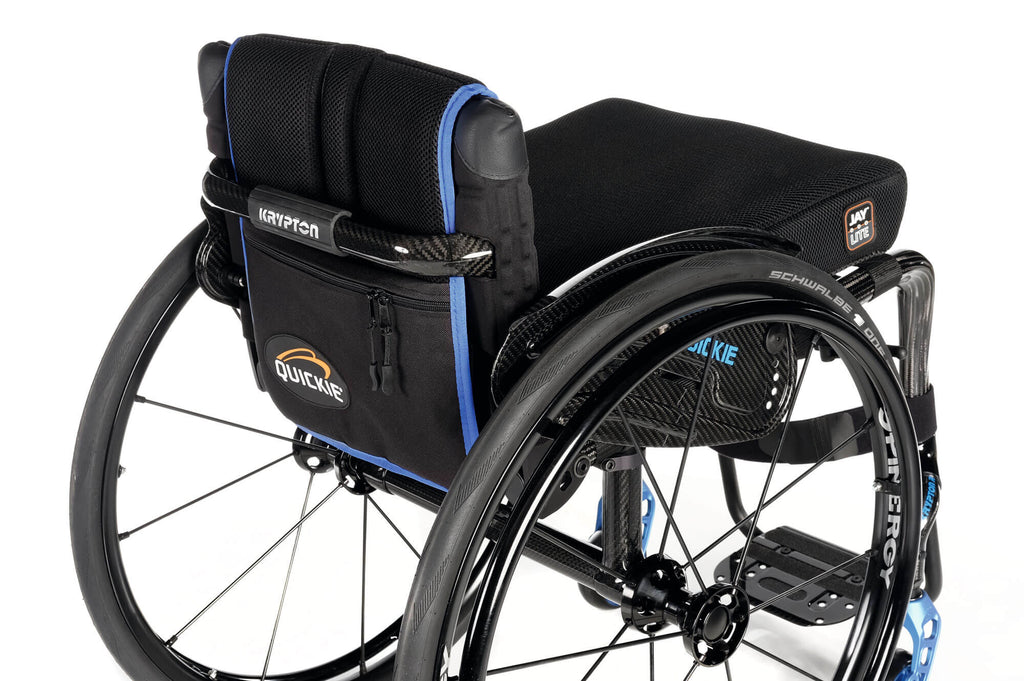 The Quickie Krypton is available in a transparent gloss finish, accented with blue details, to provide a visually striking appearance. Each chair is meticulously finished by hand, ensuring top-notch quality. As you assess the options, you'll discover hundreds of ways to customize your Krypton for optimal performance, making it truly unique and tailored to your needs. With over 10,000 possible combinations, your Krypton will be one of a kind.