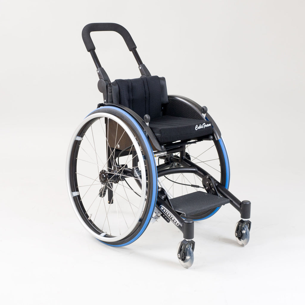 The W5 Junior is a well-engineered rigid frame wheelchair that offers a perfect balance of durability and lightweight design. It is available in both welded and adjustable versions, with the welded model featuring a solidly welded backrest and rear axle. This provides incredible stability and strength, allowing the child to exert all their energy into driving the wheelchair.