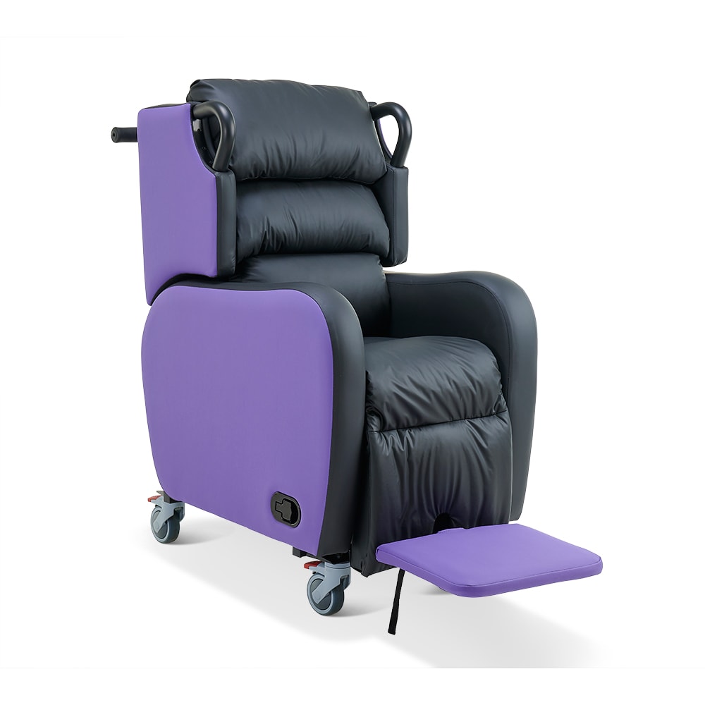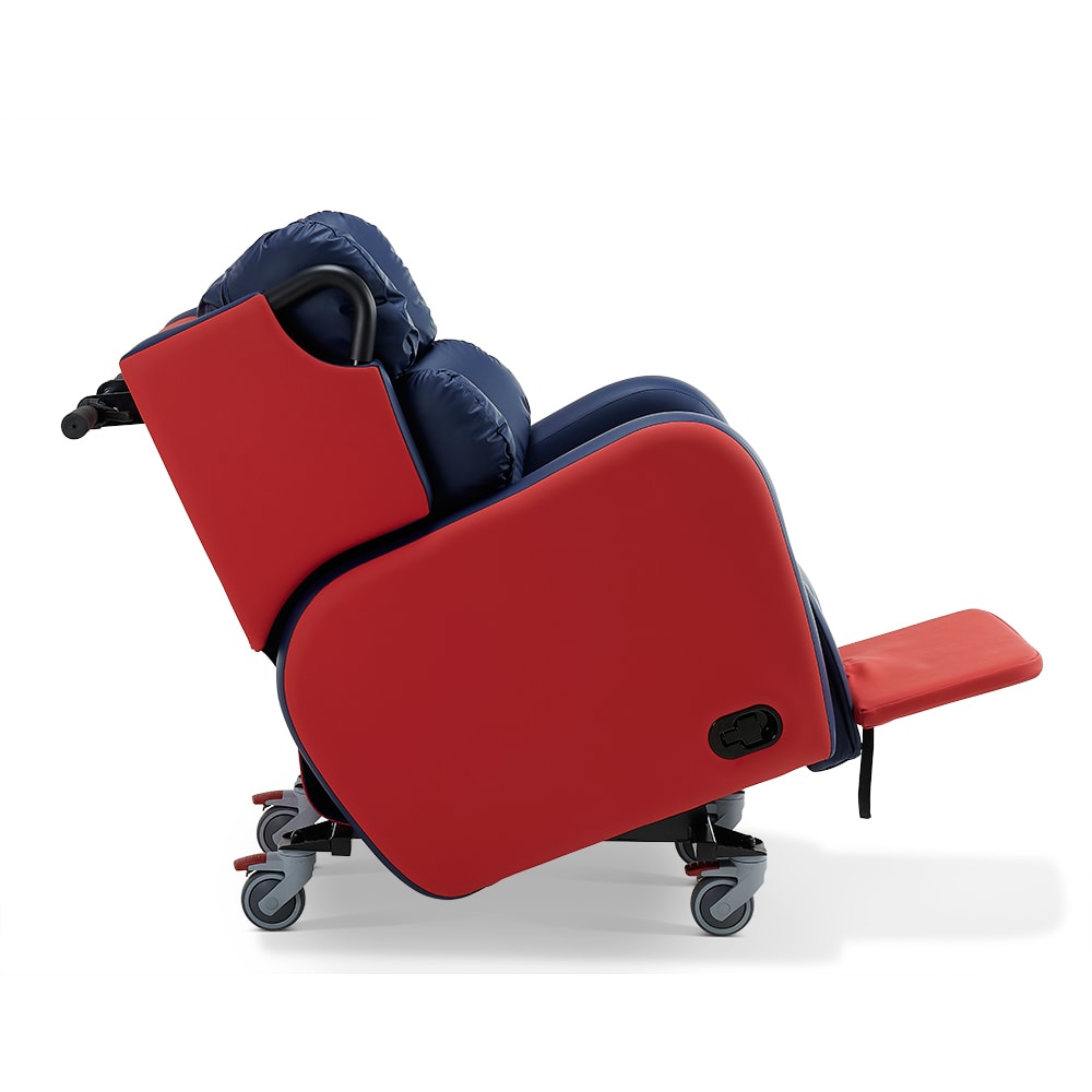 This health chair for young individuals provides exceptional comfort with its independent Tilt in Space, Backrest Recline, and Leg Rest Elevation functions. These features allow for a variety of postural positions, making it ideal for high pressure management care. It is also available in a manual model.