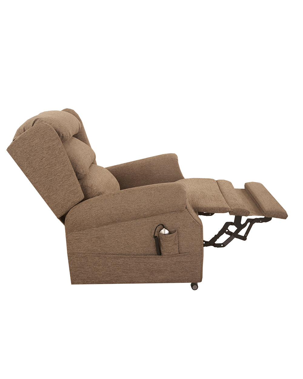 The Tilmore is designed for optimal comfort and support. With its independent control and split ottoman footrest, it allows for greater and longer hip to heel support while sitting. The adjustable Waterfall Back design can be repositioned to maximize lumbar and head support, providing personalized comfort.