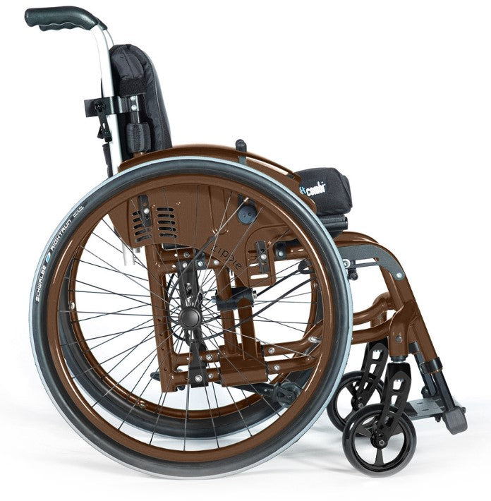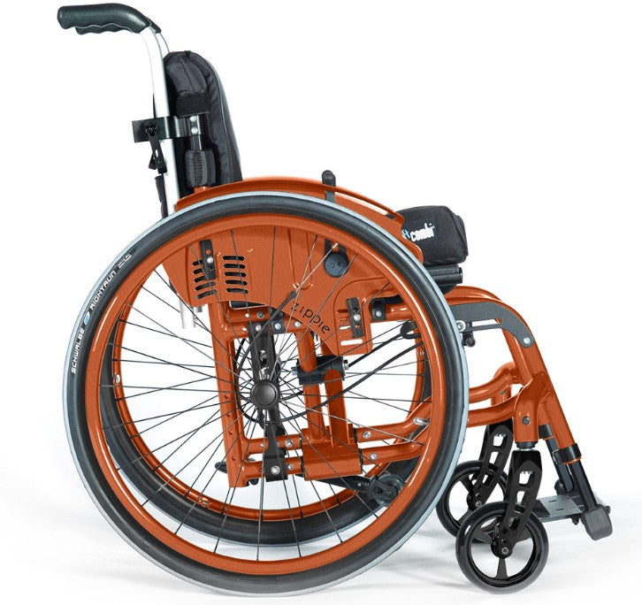 The ZIPPIE Youngster 3 is the perfect choice for active kids, offering excellent manoeuvrability and stability. With up to +2 cm and +4 cm of seat width and depth growth, this ultra lightweight wheelchair can be easily customized for a unique look. Choose from a variety of frame and wheel colours at varying prices.